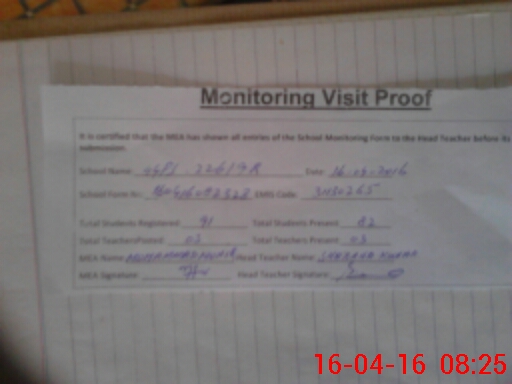 | Attendance Register | Head Teacher | MEA with School | Visit Proof |
