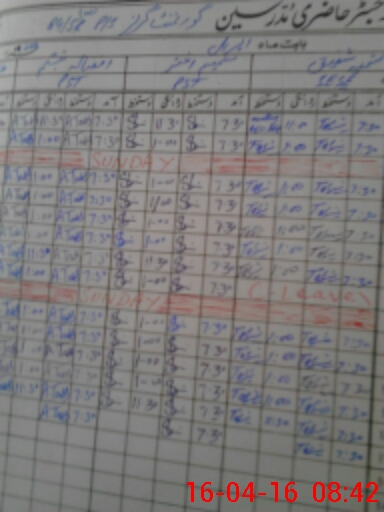 | CNIC | Full Name | Designation | R/C | Absence During Last Calender Month |