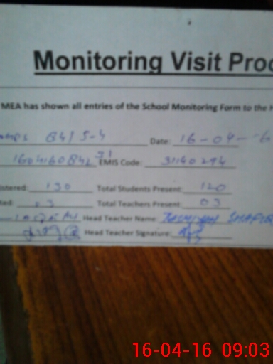 | Attendance Register | Head Teacher | MEA with School | Visit Proof |