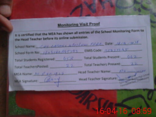 | Attendance Register | Head Teacher | MEA with School | Visit Proof |