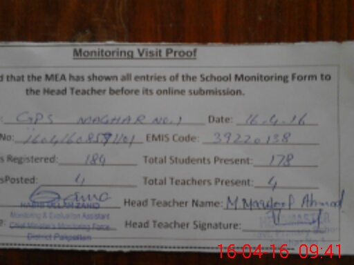 | EMIS Code: 39220138 | Name of School: GPS MAGHER NO. 1 | |||