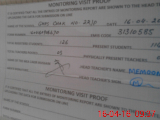 | EMIS Code: 31310585 | Name of School: GMPS CHAK 22/P | |||