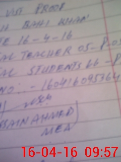 | Name: As**** Na**** Designation: (School Headmaster's/Headmistress's) Est Phone/Cell Number: 03**** |