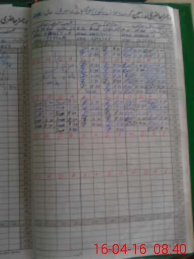 | CNIC | Full Name | Designation | R/C | Absence During Last Calender Month |
