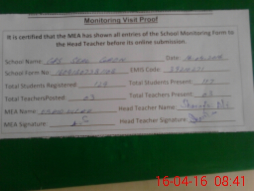 | Certified that this School was Inspected by the Undersigned MEA/DMO Today and the Information Stated Above is as Per Record. | |||||