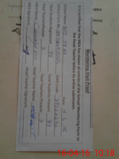 | Certified that this School was Inspected by the Undersigned MEA/DMO Today and the Information Stated Above is as Per Record. | |||||