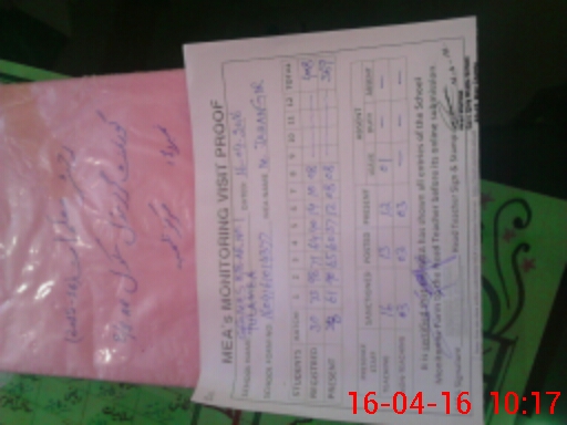 | Monitoring Date: 16-04-2016 | Start Time: 16-04-2016 08:43 AM | End Time: 16-04-2016 10:18 AM | Name of MEA: Mu**** Ja**** | |