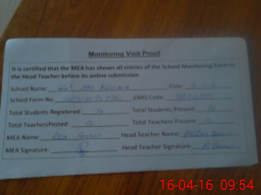 | Attendance Register | Head Teacher | MEA with School | Visit Proof |