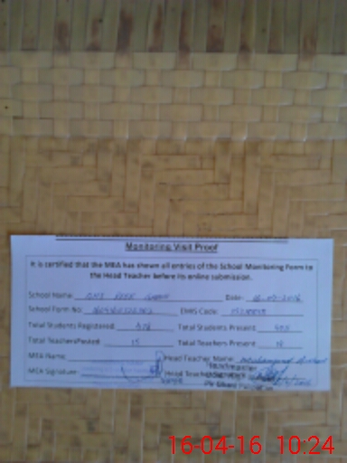 | Attendance Register | Head Teacher | MEA with School | Visit Proof |