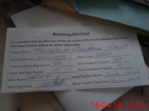 | Certified that this School was Inspected by the Undersigned MEA/DMO Today and the Information Stated Above is as Per Record. | |||||