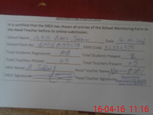 | EMIS Code: 32330374 | Name of School: GGPS BASTI JARAIN | |||