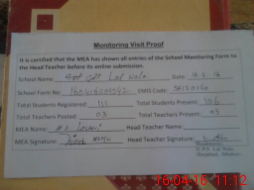 | EMIS Code: 36120140 | Name of School: GPS LAL WALA SHUJAHABAD | |||