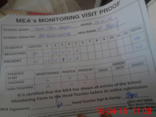 | Certified that this School was Inspected by the Undersigned MEA/DMO Today and the Information Stated Above is as Per Record. | |||||