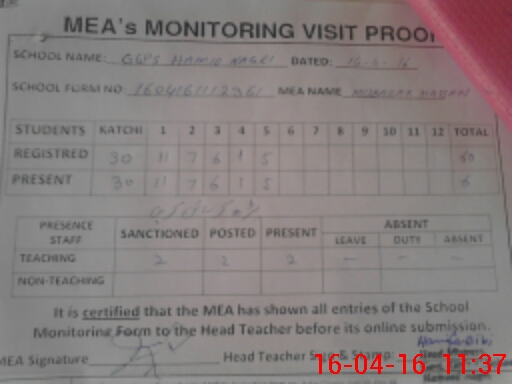 | Certified that this School was Inspected by the Undersigned MEA/DMO Today and the Information Stated Above is as Per Record. | |||||