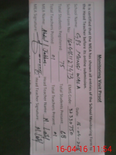 | Certified that this School was Inspected by the Undersigned MEA/DMO Today and the Information Stated Above is as Per Record. | |||||