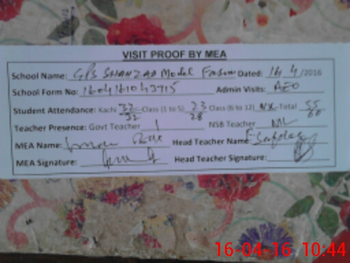 | EMIS Code: 32430111 | Name of School: GPS SHAHZAD MODEL FARM | |||