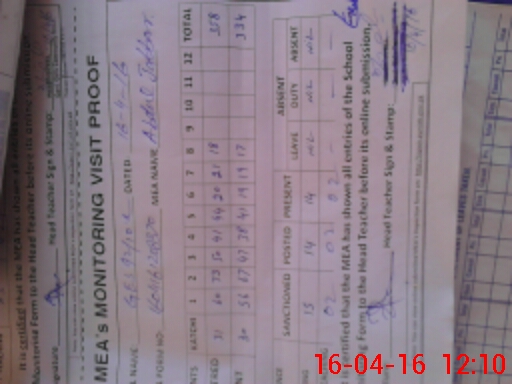 | Attendance Register | Head Teacher | MEA with School | Visit Proof |