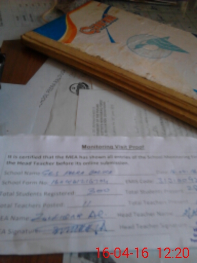 | Attendance Register | Head Teacher | MEA with School | Visit Proof |