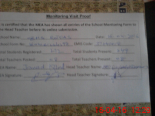 | Attendance Register | Head Teacher | MEA with School | Visit Proof |