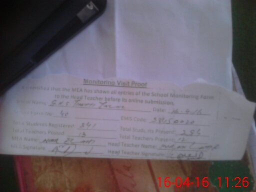 | Attendance Register | Head Teacher | MEA with School | Visit Proof |