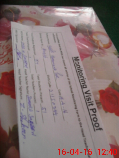 | School Visited by School Health & Nutrition Supervisor (No. of Visits) | Name1: | ZARINA SULTANA | Name2: | ||