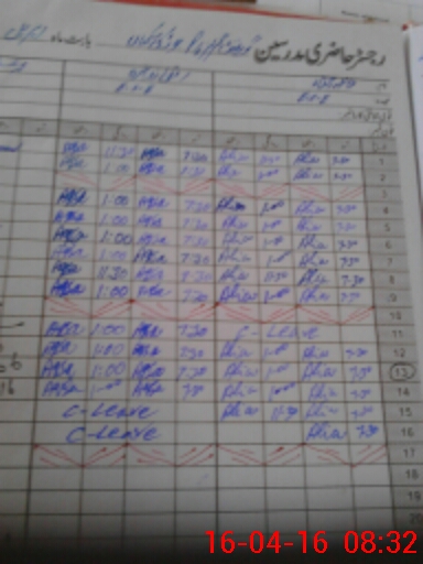 | CNIC | Full Name | Designation | R/C | Absence During Last Calender Month |