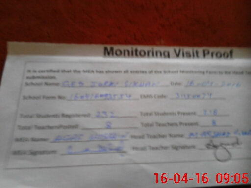 | Attendance Register | Head Teacher | MEA with School | Visit Proof |