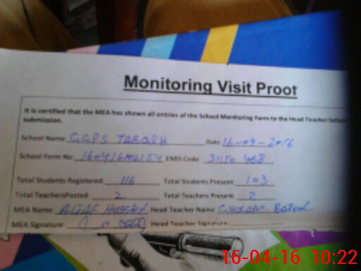 | Attendance Register | Head Teacher | MEA with School | Visit Proof |