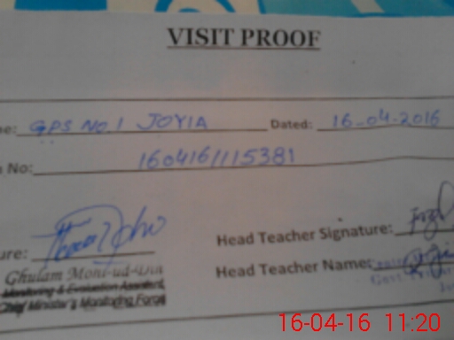 | EMIS Code: 38210280 | Name of School: GPS NO. 1 JOYIA | |||