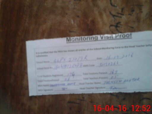 | Attendance Register | Head Teacher | MEA with School | Visit Proof |
