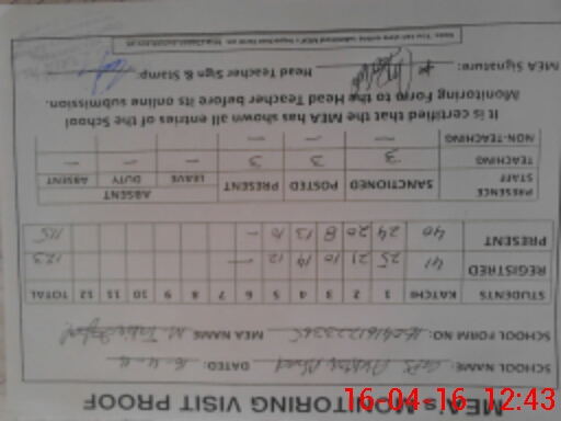 | Attendance Register | Head Teacher | MEA with School | Visit Proof |