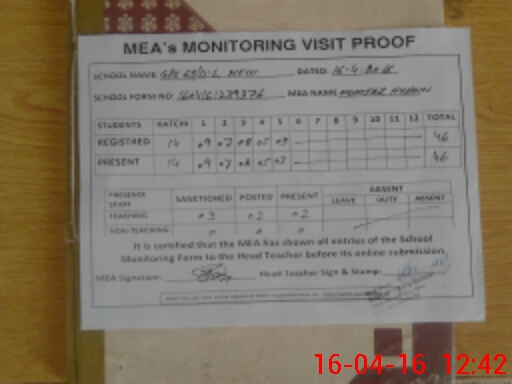| Attendance Register | Head Teacher | MEA with School | Visit Proof |