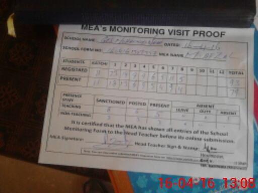 | Attendance Register | Head Teacher | MEA with School | Visit Proof |