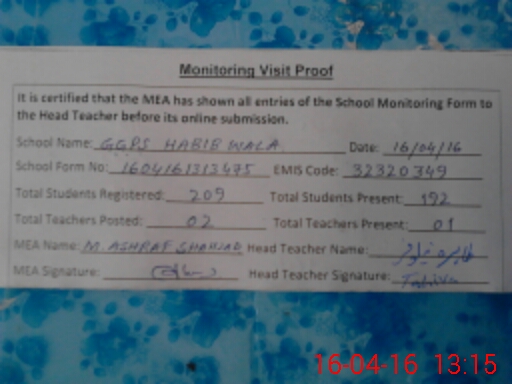| EMIS Code: 32320349 | Name of School: GGPS HABIB WALA | |||