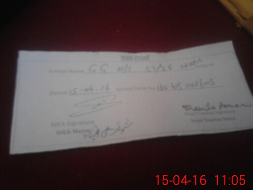 | Attendance Register | Head Teacher | MEA with School | Visit Proof |