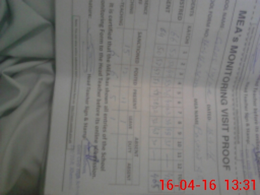 | Monitoring Date: 16-04-2016 | Start Time: 16-04-2016 12:12 PM | End Time: 16-04-2016 01:33 PM | Name of MEA: Z.**** Ba**** Al**** | |