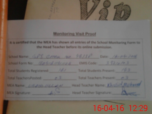 | EMIS Code: 39210103 | Name of School: GPS 48/SP P.O 8/S.P PAKPATTAN | |||