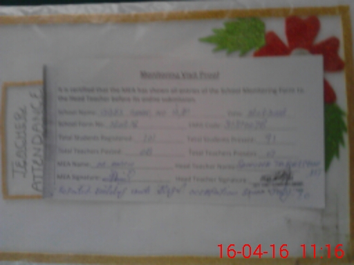 | Attendance Register | Head Teacher | MEA with School | Visit Proof |