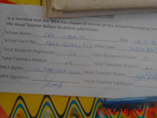 | Attendance Register | Head Teacher | MEA with School | Visit Proof |