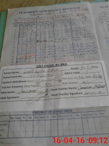 | Attendance Register | Head Teacher | MEA with School | Visit Proof |