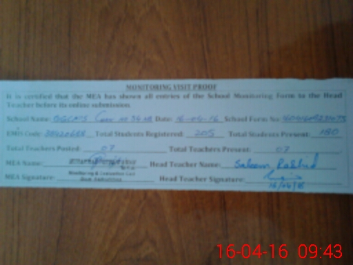 | Certified that this School was Inspected by the Undersigned MEA/DMO Today and the Information Stated Above is as Per Record. | |||||
