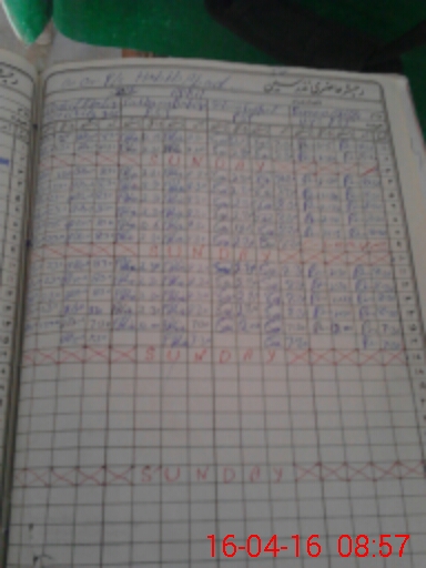 | CNIC | Full Name | Designation | R/C | Absence During Last Calender Month |