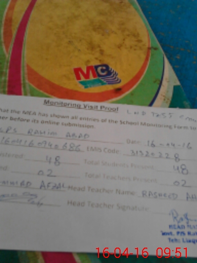 | EMIS Code: 31320228 | Name of School: GPS RAHIM ABAD | |||