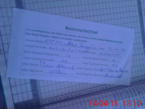 | Certified that this School was Inspected by the Undersigned MEA/DMO Today and the Information Stated Above is as Per Record. | |||||