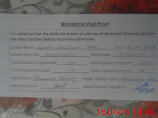 | EMIS Code: 31320545 | Name of School: GMPS BASTI GHULAM NABI | |||