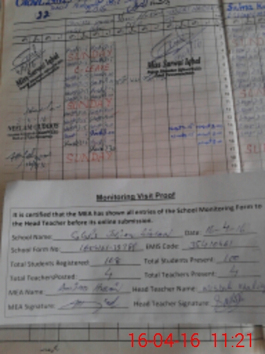 | Attendance Register | Head Teacher | MEA with School | Visit Proof |