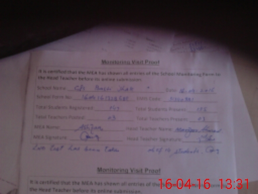 | Attendance Register | Head Teacher | MEA with School | Visit Proof |
