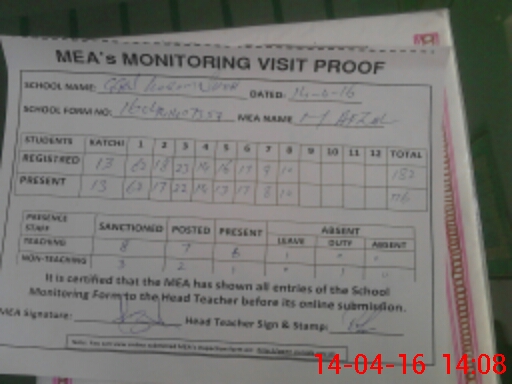 | Attendance Register | Head Teacher | MEA with School | Visit Proof |