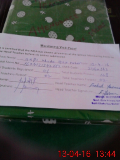 | Attendance Register | Head Teacher | MEA with School | Visit Proof |