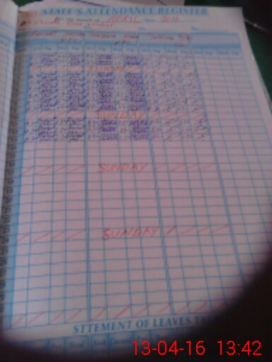 | CNIC | Full Name | Designation | R/C | Absence During Last Calender Month |